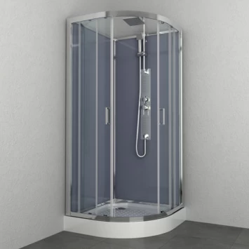 Geniet van een warme douche na een vermoeiende dag. Stap gemakkelijk in de doucheruimte met de ruime instap op de hoek en de antislip-voorziening in de douchebak. De schuifdeuren open je door deze met de handgrepen te schuiven. Je hoeft daardoor in je badkamer geen rekening te houden met een openzwaaiende deur. De wanden van de douche zijn van doorzichtig veiligheidsglas, zodat je optimale lichtinval hebt vanuit je badkamer. De achterzijde van de cabine is uitgevoerd in de kleur grijs. Het geheel is afgewerkt in strakke matte aluminium profielen. Dat contrasterende effect staat mooi in jouw modern of minimalistisch interieur!