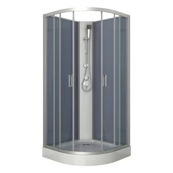 Geniet van een warme douche na een vermoeiende dag. Stap gemakkelijk in de doucheruimte met de ruime instap op de hoek en de antislip-voorziening in de douchebak. De schuifdeuren open je door deze met de handgrepen te schuiven. Je hoeft daardoor in je badkamer geen rekening te houden met een openzwaaiende deur. De wanden van de douche zijn van doorzichtig veiligheidsglas, zodat je optimale lichtinval hebt vanuit je badkamer. De achterzijde van de cabine is uitgevoerd in de kleur grijs. Het geheel is afgewerkt in strakke matte aluminium profielen. Dat contrasterende effect staat mooi in jouw modern of minimalistisch interieur!
