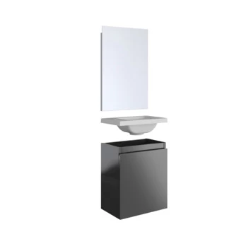 Maak het jezelf makkelijk met de Portopack van Allibert. Het kastje onder de wastafel krijg je voorgemonteerd geleverd; je hoeft het wandmeubel alleen nog aan de muur te hangen met schroeven. Het heeft de afmetingen van 40 cm breed 45 cm hoog en 25 cm diep. De kast heeft een naar rechtsdraaiend deurtje (scharnieren aan de rechterzijde) en met het soft-close systeem sluit je deze altijd zachtjes. De donkergrijze kleur heeft een mooie glanzende afwerking. Doordat de deur geen grepen heeft, oogt deze mooi strak. Het meubel past hiermee perfect in jouw moderne badkamer.