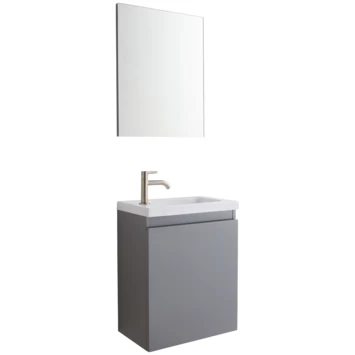Met het Allibert fonteinmeubel Portopack grijs 40cm haal je een compleet wastafelmeubel in huis! Het fonteinmeubel bestaat uit een MDF houten wastafelkast, een spiegel van 51 cm hoog en een polybeton wasbak. De bevestigingsmaterialen zijn ook inbegrepen. Met dit fonteinmeubel heb je alleen nog een kraan en een afvoerset nodig! Geen probleem, ook díe kun je kopen bij GAMMA.